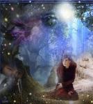 …Ты словно светлым-светлым облаком, лепестком летаешь в выси, лучики солнца идут сквозь твои глаза, зима вьет, ночь встречает рассвет, а они все летят, как маленькие птички, спешат унести в хрупкие крылышки мою печаль… Тонким, нежным розовым лучиком гладят они мне сердце в стеклянном саду тишины, где время кружится в танце… с тобой (ты рядом, каждый листик шепчет загадкой (то твои шаги, ты близко) И замирает душа, когда осторожно касается лучика, этого трепетного лучика твоей души, алмазными бабочками распускается дождь под луной (твои тихие глаза хранят мой сон)… Звездочки переливаются в тумане, что мягок как твоя кроткая улыбка, крылья, голос, твои крылья… Бережно коснусь их руками, если позволишь, и это будет для меня, точно та птичка незримого ласкового тепла, навсегда сохраню ее в ладони, чувствую биение твоего сердца,.. …Мой ангел…
