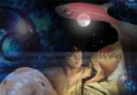 ...Жучок открыл глаза - по листикам пробежал лучик, греющий и нежащий, тихий, как капелька, тоненькая ниточка мирка бесконечного мягкого облачка света, но вдруг он побежал, как пушистый зайка, переливы его сияния все еще были в его глазах... Прячась в другом листике, и он бежал вдаль, листик летел, как лепесток, кружился в ветерке, высоко, как мгновение, завораживал взгляд, он, точно торопился куда-то... Маленькие глазки малыша опустились - как удивительно, только был совсем рядом, а сейчас - скользнул далеко, сквозь снег, капельки дождя, и возможно, что-то хочет сказать... Солнце как на прощание погладило крылышки крохи в нем? Жучок осторожно прислушался к себе - так ли это, если оно было рядом, и летит, торопясь, как листик, в лучике... Он внимательно посмотрел - казалось, он сам летит, только незаметно, одними глазками, за ними, осторожно касаясь тропинок в травинках, дали леса, окутанные белым светом... их тепла! "Ничто не прощается!" - с радостью в сердечке подумал жучок, глядя в этот большой и удивительный мир, который бежал вместе с солнцем, казалось, храня в каждом своем миге загадку... Он храбро полетел, не оглядываясь, забыв про чуть мерзнущие от снежинок крылышки, так старательно, как мог, ведь надо, надо успеть, скорее... лучик словно ведь еще касался его спинки и усиков, дорожкой вел его за собой... Где-то впереди алая дымка поглотит его (совсем нестрашно, бережно вбирает в себя точно воздушные очертания уходящих в горизонт пейзажей - это закат)... Жучок осторожно потрогал усиками его лучик - как тепло, все еще тепло, хотя занимается синева сумерек - это не прощание, что-то еще впереди, он чувствовал, еще впереди... Он вдруг ощутил - лучик все еще летит, по магическому и незримому кругу времени, где звезды возвращаются снежинками, ветерок - переливами капелек дождя, а он - листиком, алым, легким, летящим вдаль, то будет... Рассвет! Жучок успел, присел на травинку, ощутив, как не то снежинкой, не то звездой гладят его спинку сотни мерцаний светлого-светлого тумана солнца (оно рядом), легонько, с тихой радостью еще раз погладил алое его одеяльце заката для этого волшебной, бесконечной сказки мира...