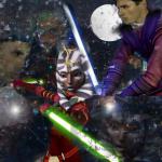 Звездные Войны: Байки… Космоса (Do You Have... (The... Force) ...? Когда-то,во всей Вселенной, таинственно манящей белоснежными узорами… Звезд…жили отважные Джедаи, что всеми силами боролись с Сепаратистами ради всеобщегомира и блага.Но… итогда с ними случались разные, презабавные приключения; например… Эпизод 1: Необычайное происшествие… В дубравесумеречного Коруасанта, в тишине, изредка прерываемыми шелестом листьев ипопискиваниями его дремлющих жителей, один раз… Бежала Оссока,что никогда еще не выглядела такой рассердившейся: у нее Энакен, шутя, украл световоймеч и ходил, как дурачок, смеялся, хвастаясь, что теперь у него как у самогоОсобенного Джедая 3 меча. Видела это она,как ее добродушно называл Скайуокер - Шпилька, и заплакала от досады. К счастью, натанке… вдруг приблизилась Шаак Ти и стала отчитывать Энакина за такой поступок(а тот долго стоял и размышлял - не открывается ли ему Темная Сторона Силы,ясен ли его рассудок, а то ему две Оссоки мерещились - одна маленькая, вторая –выросшая (так Шаак Ти и Оссока (когда вырастет) были похожи). Но Шаак Ти, сурово-внимательноглядя, обычно очень добрыми и ласковыми, глазами, долго не выжидая, подбежала кСкайуокеру и дала ему шлепка световыми своими мечами. Тот ошалел и,все также смеясь, приплясывая, стал петь коруасантские частушки, какие когда-тослышал от Трипио. Все сталисмеяться и мириться, но тут... Из жутковатойтемноты, сверкая красными, словно кровь, мечами, выскочила Вентресс и сталахаять всех, и говорить что она, самая прекрасная, самая талантливая, быстро искоро уничтожит всех. Энакин сталискать глазами и взволнованно звать Р2, чтобы стремительно шепнуть ему онеобходимости соединиться с кораблем, а сам, как командир, отошел в безопасноеместо, в густую сень листвы пальм. А Шаак Ти иШпилька храбро выступили вперед, чтобы сражаться. Однако, очень кстати, прибежалк ним Джа-Джа, который хотел поучиться обращаться с Силой и со световым мечом(если вдруг станет Джедаем). Вентресс наэтот ход событий нежданно надулась, посопела, потом покряхтела, после -оскорбилась и, поклявшись пожаловаться Графу Дуку, что обязательно найдетуправу на «мерзких меченосцев», убежала быстро-быстро, даже забыв свои мечи. На радостях Скайуокервсе-таки вернул Оссоке меч и, мягко погладив ее по необычной полосатой макушке,стал обсуждать стратегические планы на предстоящие сражения с Шаак Ти ( потому,что отлично понимал – даже в мелькании световых лет дорога каждая секунда) Тем временем,успевшая дивным образом пробраться на Набу, среди прохладных роскошных колоннХрама Джедаев бродила Вентресс, жаждя мести, искала, кого бы еще убить илипредать за фальшивые обещания и пустые награды Сепаратистов, и… из егозадумчивых тишиною глубин, услышала музыку. В тот же миг степлотой подумала, что Джедаи всем Советом бросились праздновать чью-то очереднуюуспешно выполненную миссию, обрадовалась (ведь, если они будут отмечать, то наболтаются,из развлечения шутливо поборются на мечах, примутся торжественно выступать передКанцлером, устанут, если повезет – уснут, и тогда их можно будет быстро,незаметно, бесшумно убить и успешно скрыться – обрадовать Лорда Ситхов) Но...разозлилась Вентресс, когда увидела, что это никто не праздновал, это просто МадамЙокасста танцевала "Яблочко" с Великим Учителем Йоддой – онутверждал, что «мале