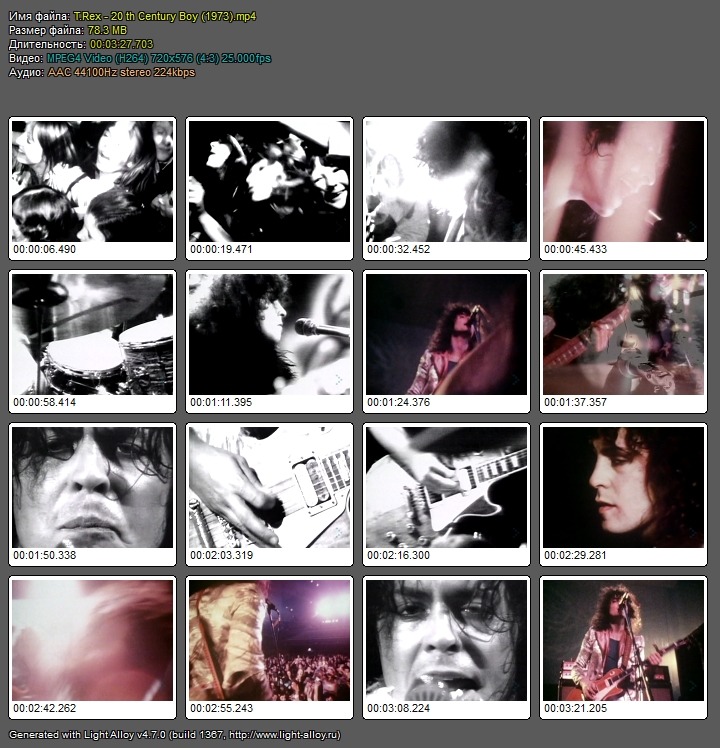 T.Rex-Century Boy(1973)mp4 Исполнитель:T.Rex Композиция:Century Boy Жанр:глэм pok Год:1973 Видео:AVC,720x576(4:3)(PAL),25000fps,2945kbps Аудио:AAC(LC),44100Hz,2ch,224kbps Размер:78.3МВ Время:3мин.27сек. Файлообменник:Depositfiles.comСкачать(Download):