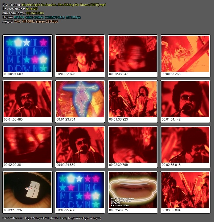 Electric Light Orchestra-Don't Bring Me Down(1979)mp4 Исполнитель:Electric Light Orchestra Композиция:Don't Bring Me Down Жанр:Симфонический рок,Поп-рок Год:1979 Видео:AVC,720x576(PAL),25000fps,2930kbps Аудио:AAC(LC),44100Hz,2ch,226kbps Размер:91.4МВ Время:4мин.03сек. Файлообменник:Depositfiles.comСкачать(Download):