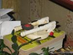 Цитата(Romantic Warrior @ 28.12.2007, 23:48)  А еще в деревне у меня была классная красно-белая машина-амфибия на батарейках. Не помню, насколько хорошо она плавала, но вот из двух своих ракетных орудий стреляла здорово, на приличное расстояние Плавала она прекрасно (во всяком случае в ванной), имела задние ведущие колеса и гребной винт, включалась поворотом "спасательного круга" ездила и плавала вперед и назад. Имела две сменные башни: одна (плохо помню) с одним орудием, вторая с двумя стреляющими ракетницами, каждая из которых по отдельности могла изменять угол наклона стрельбы  Все что от нее осталось - пара колес и зенитка, которая до сих пор стреляет карандашами