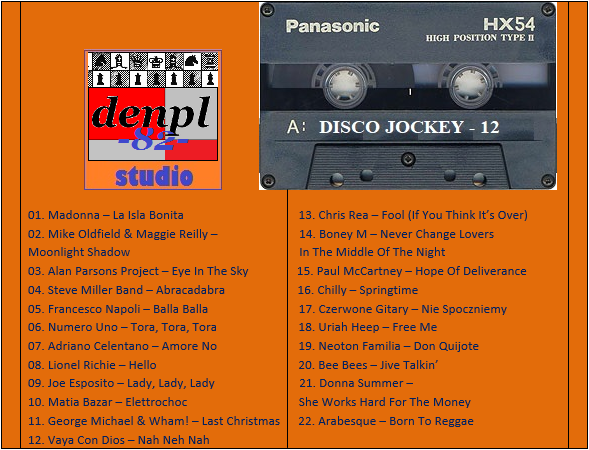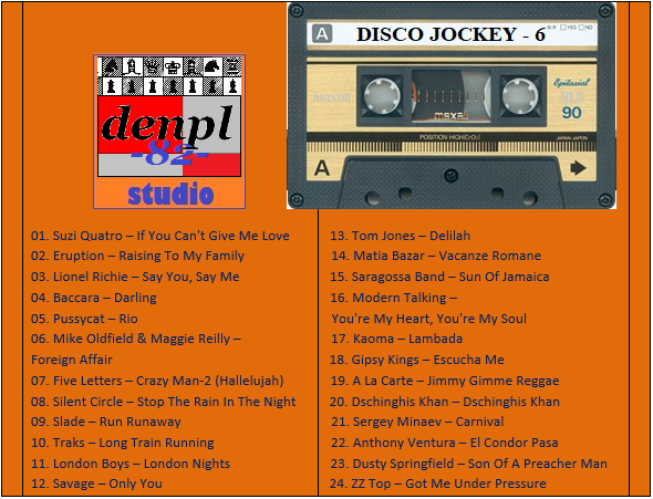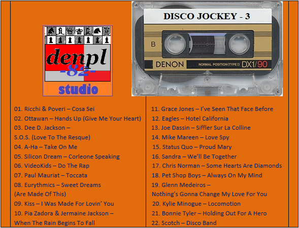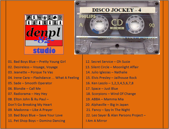 DISCO JOCKEY – 4 Студия «denpl-82». Составил и Смикшировал: DJ denpl-82 Время звучания: 93 min.