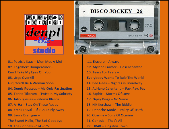 DISCO JOCKEY – 26 Студия «denpl-82». Составил и Смикшировал: DJ denpl-82 Время звучания: 91,5 min.