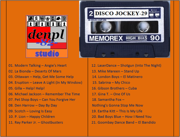 DISCO JOCKEY – 29 Студия «denpl-82». Составил и Смикшировал: DJ denpl-82 Время звучания: 92 min.