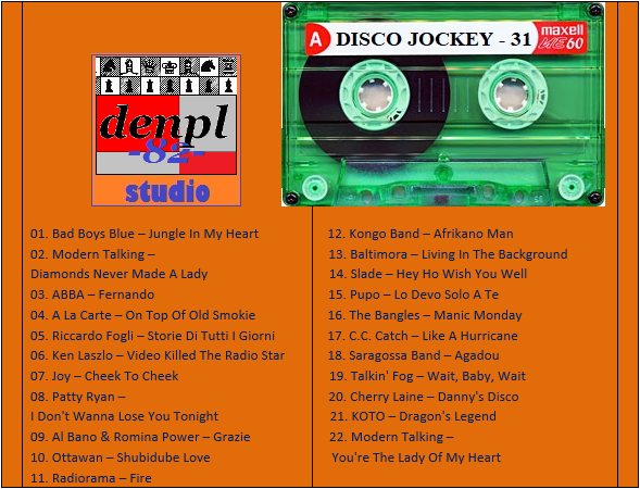 DISCO JOCKEY – 31 Студия «denpl-82». Составил и Смикшировал: DJ denpl-82 Время звучания: 92 min.