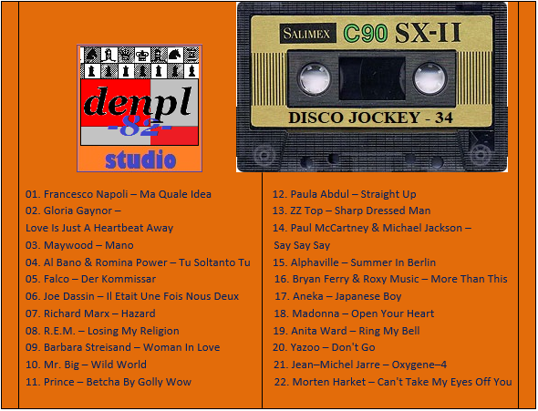 DISCO JOCKEY – 34 Студия «denpl-82». Составил и Смикшировал: DJ denpl-82 Время звучания: 94 min.