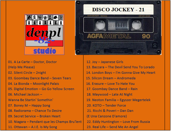 01. A La Carte – Doctor, Doctor (Help Me Please) 02. Silent Circle – 2night 03. Goombay Dance Band – Seven Tears 04. La Bionda – Moonlight Palais 05. Digital Emotion – Go Go Yellow Screen 06. Michael Jackson – Wanna Be Startin’ Somethin’ 07. Boney M – Happy Song 08. Radiorama – Chance To Desire 09. Secret Service – Broken Heart 10. Niagara – Pendant Que Les Champs Bru’lent 11. Ottawan – A.I.E. Is My Song 12. Joy – Japanese Girls 13. Baccara – The Devil Send You To Lorado 14. London Boys – I’m Gonna Give My Heart 15. Silicon Dream – Andromeda 16. Erasure – Love To Hate You 17. Goombay Dance Band – Rain 18. Maywood – Late At Night 19. Neoton Familia – Egyszer Megertelek 20. KOTO – Tender Force 21. Ricchi & Poveri – Dan Dan (E Una Canzone D’amore) 22. Eddy Huntington – Love From Russia 23. Real Life – Send Me An Angel