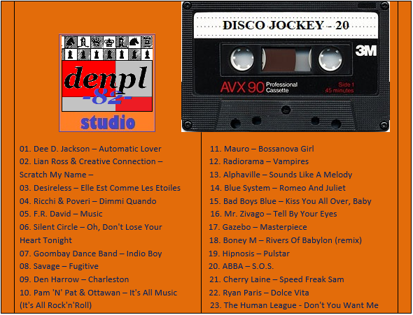 DISCO JOCKEY – 20 Студия «denpl-82». Составил и Смикшировал: DJ denpl-82 Время звучания: 94 min.
