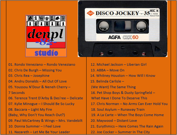 DISCO JOCKEY – 35 Студия «denpl-82». Составил и Смикшировал: DJ denpl-82 Время звучания: 91,5 min.