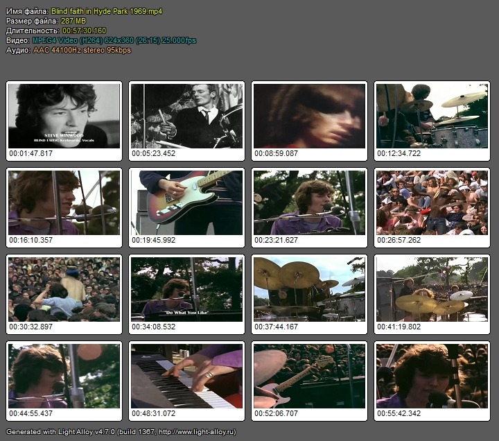 BLIND FAITH in HYDE PARK(1969).mp4 Видео:624x360(1.733)(PAL),25000fps,599kbps Аудио:AAC(LC),44100Hz,2ch,96.0kbps Жанр:pok Год:1969(2005) Размер:287МВ Время:57мин. Треклист(Tracklist): 01.Well All Right 02.Sea Of Joy 03.Sleeping In The Ground 04.Under My Thumb 05.Can"t Find My Way Home 06.Do What You Like 07.In The Presence Of The Lord 08.Means To An End 09.Had To Cry Today Blind Faith:Ginger Baker-Drums Eric Clapton-Guitar Rick Grech-Bass Steve Winwood-Keyboards/VocalsФайлообменник: Depositfiles.com